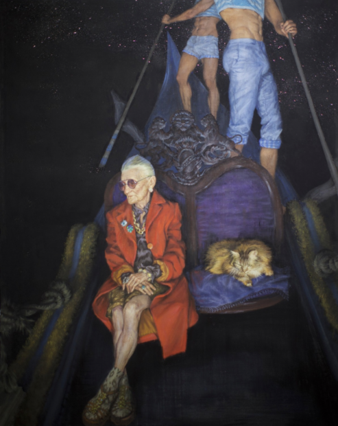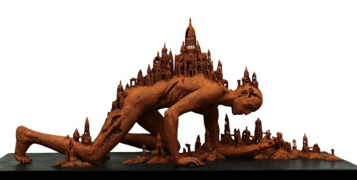 Мой голос забрал Алексей Головин, который обладает редким и потому узнаваемым авторским стилем. Он придает новые смыслы полотнам, добавляя саморезы. В этом году на премии представлен «Странник», попавший из детского ощущения мира во взрослое состояние. «У человека в душе дыра размером с Бога, и каждый заполняет еe, как может», — эта цитата Жан-Полю Сартра приведена в аннотации к работе, очень точная и глубоководная, на мой вкус.