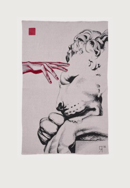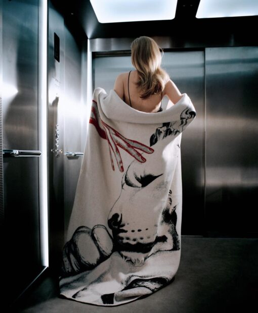 — Графика раннего периода запечатлена в полотенцах. И это работы, которые я создавала в самом начале художественной карьеры. Венчающим образом коллекции стала новая работа «Сила 2», размещенная на пледе и халатах-кимоно. Это наиболее позднее произведение в серии, символизирующее мягкую, осознанную силу женщины — внутреннее спокойствие, глубину и уверенность,
